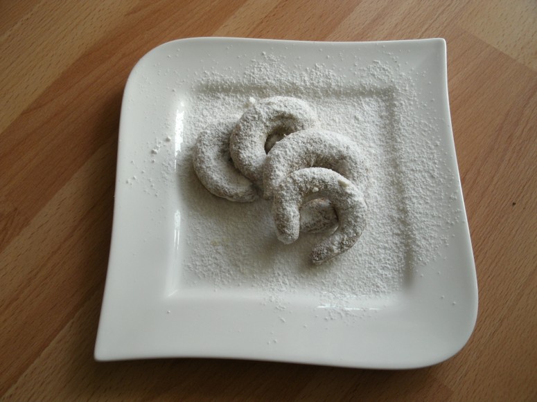 Halbmonde formen und auf ein mit Backpapier belegtes Blech legen,